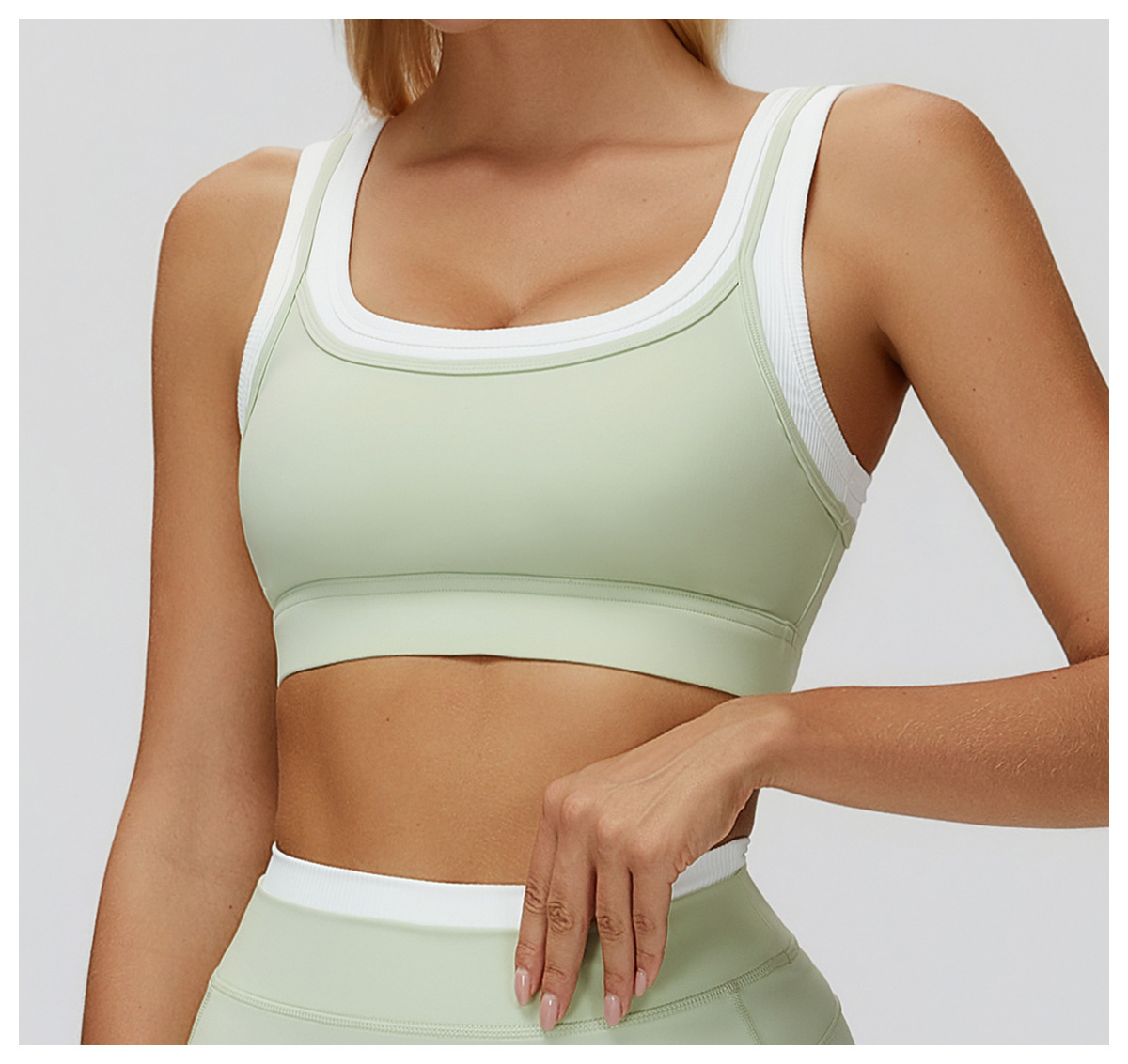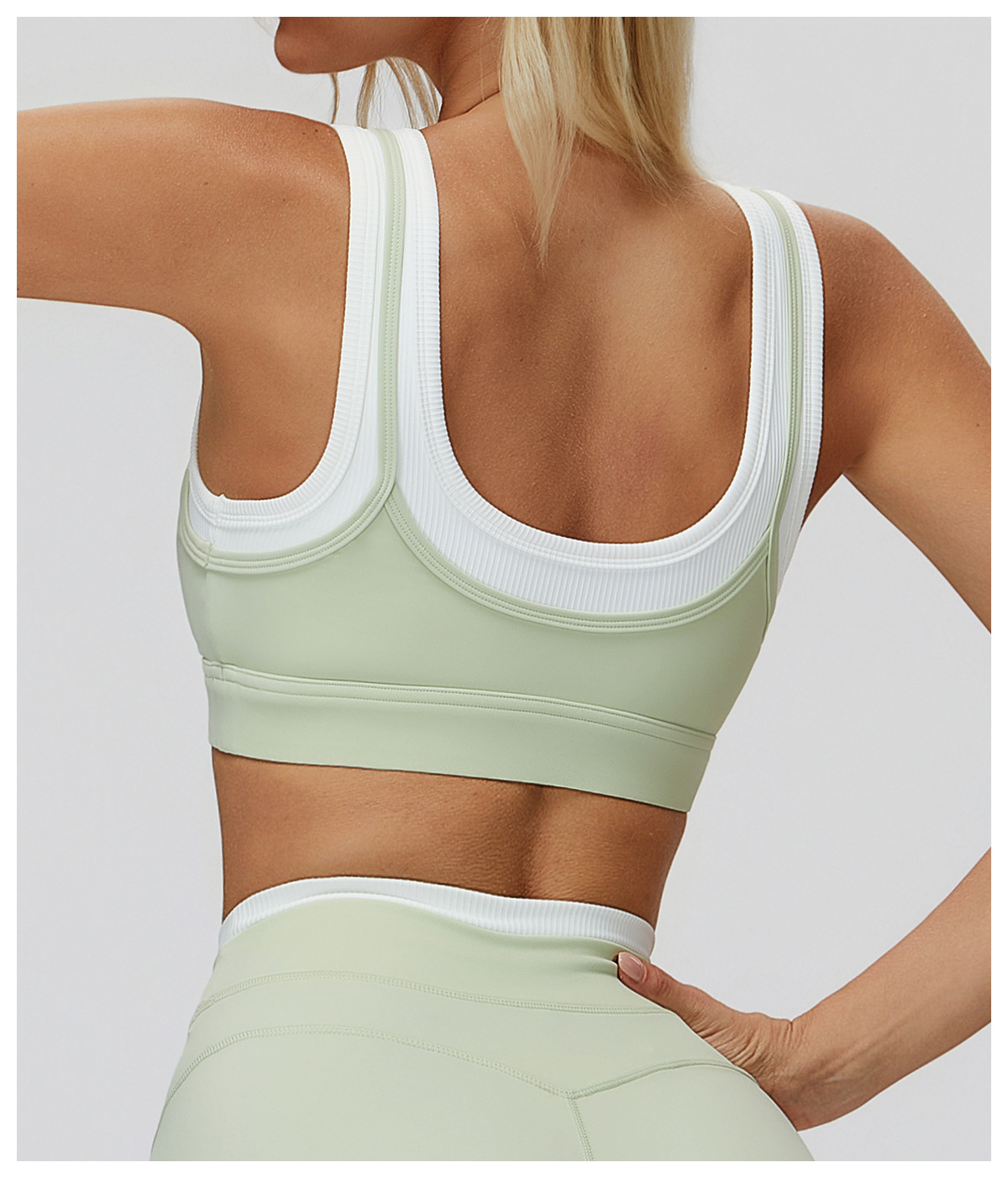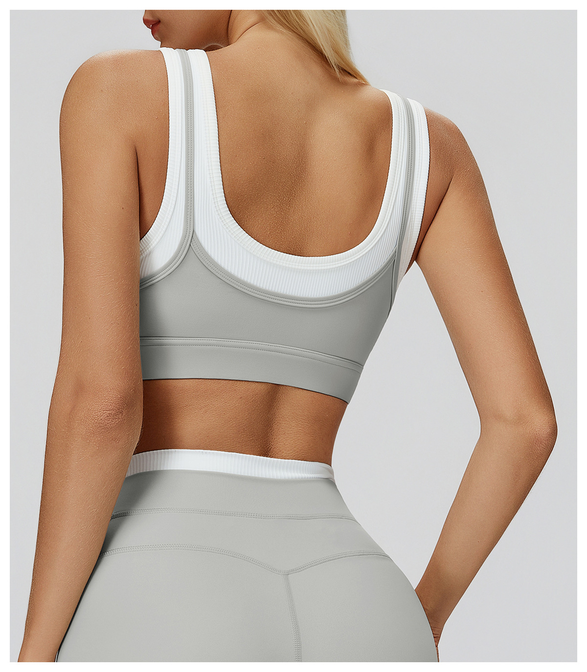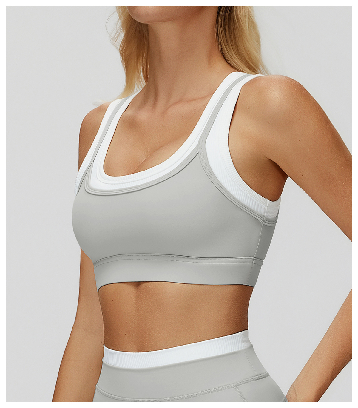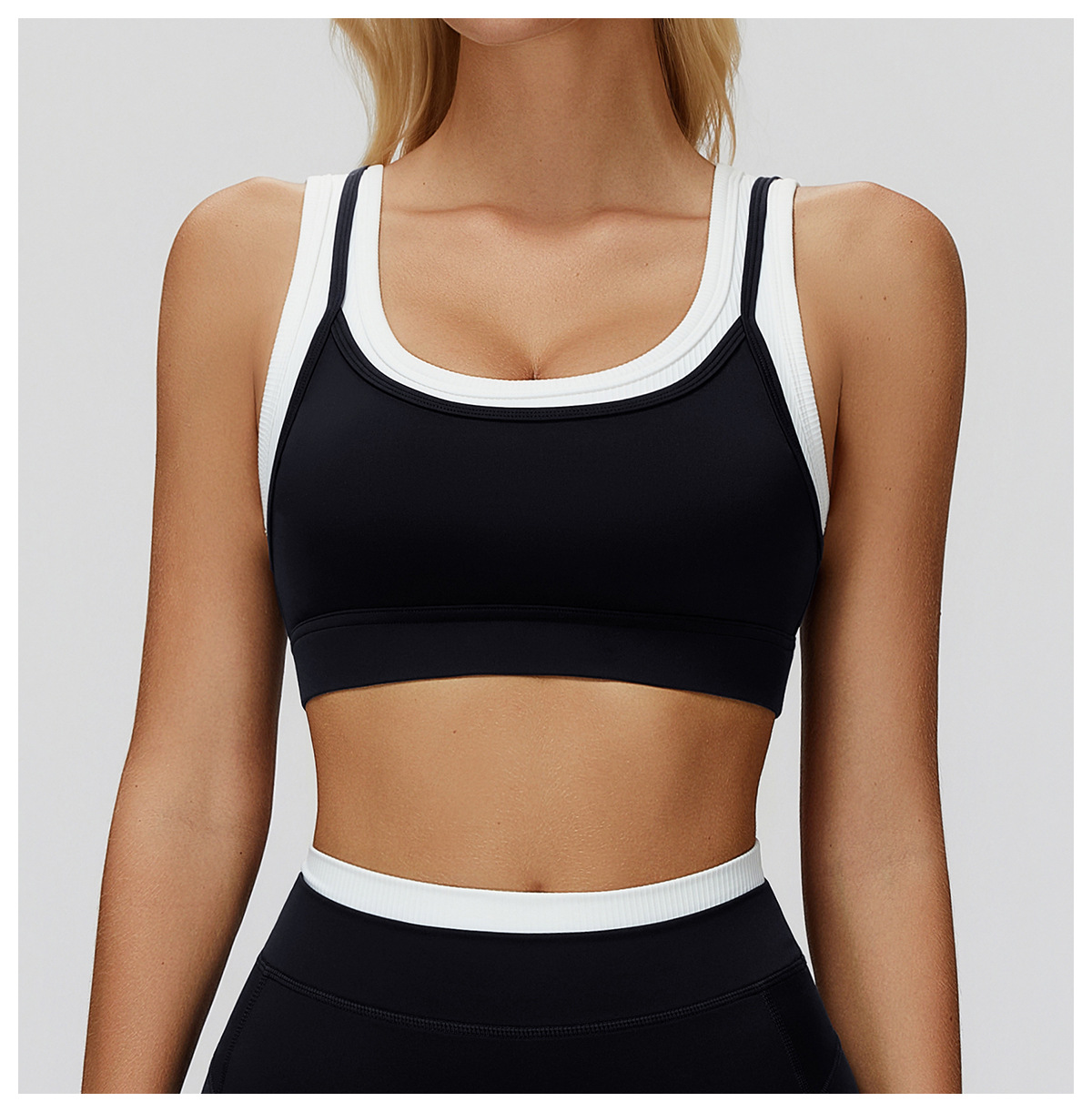 HERA FIT - Nude Feel Faux Two Piece Sports Underwear Thread Contrast Color Yoga Bra Running Workout Exercise Underwear