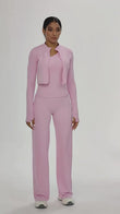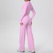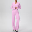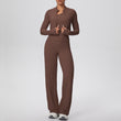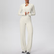 HERA FIT - Zip Long Sleeve Coat Oblique Shoulder Vest Baggy Straight Trousers Workout Clothes Yoga Three Piece Set