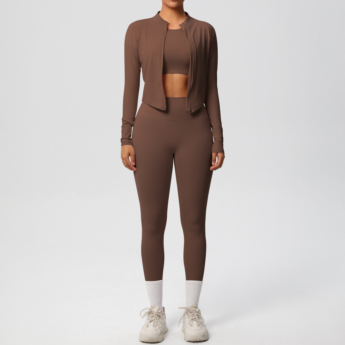 HERA FIT - Skinny Yoga Pants High Waist / Zip Long Sleeve Coat Workout Clothes Yoga Three Piece Set